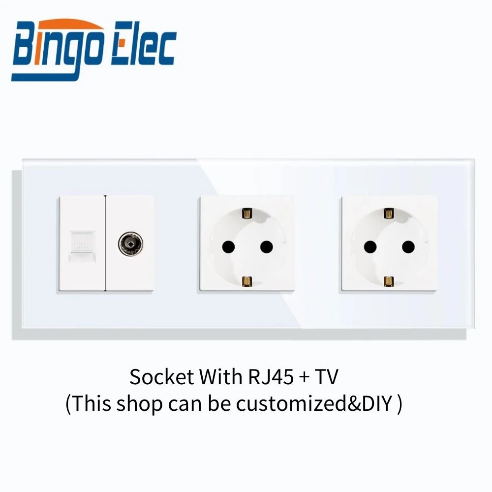 Bingoelec Eu Standard Double Socket With Tv Cat6 Socket White Black Golden 288mm Electrical Sockets Aliexpress